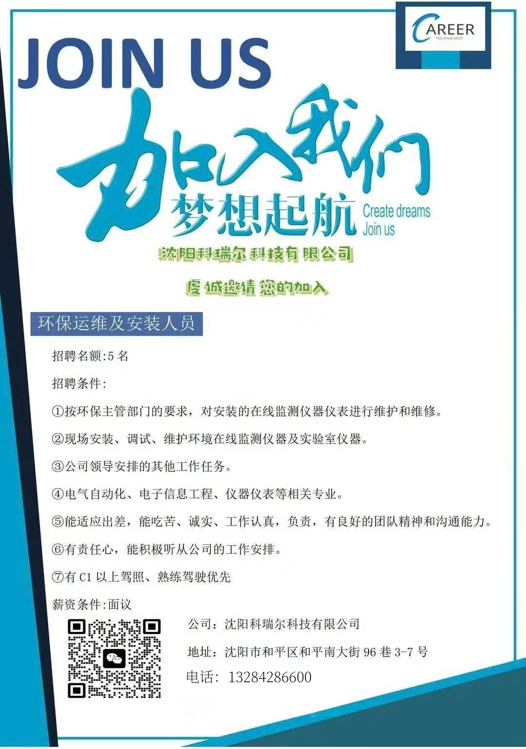 沈阳科瑞尔环保岗急招
